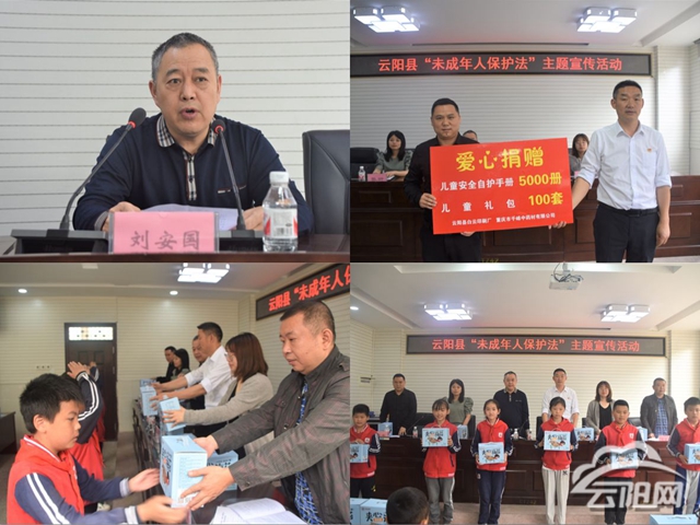 活动仪式上,县民政局相关负责人表示,最新修订《中华人民共和国未成年人保护法》将于6月1日正式实施。这是伟大祖国给孩子们送上的一份大礼,充分体现了党和政府以及全社会对未成年人的关心和爱护,也为维护未成年人合法权益,促进未成年人健康成长提供了更为有力的法律保障。爱心企业代表还捐赠了5000册儿童安全自护手册,100套儿童礼包。
