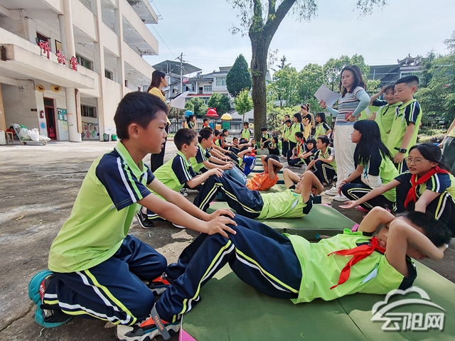 云阳网讯(通讯员 黄舟)6月16日,石门小学内操场欢声笑语,热闹非凡。该校春季运动会正式拉开了序幕。开幕式结束以后,立定跳远、仰卧起坐、跳绳、乒乓球、捧水接力赛、拔河比赛等项目同时在内、外操场进行。