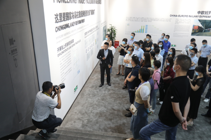 7月8日下午,全市38家区县融媒体中心骨干记者、编辑前往重庆国际物流枢纽园区集中采访,了解沙坪坝开放高地建设成果,用文字、图片、视频等全媒体方式,向全市人民全方位、多角度宣传、推介沙坪坝。
