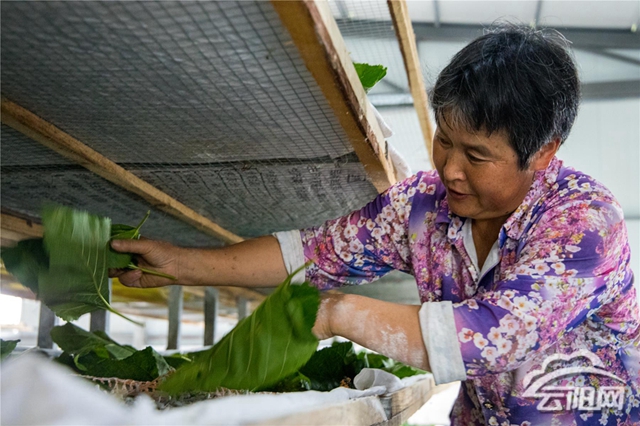 云阳网讯(记者 谭启云)近日,凤鸣镇平顶村黄泥塝家庭农场一派繁忙,整齐划一的养蚕大棚里,蚕农们正在给蚕宝宝添加桑叶。
