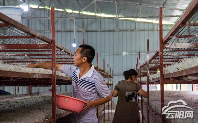 去年,凤鸣镇黎明村的养殖户张平采用地下养蚕方式试养了两批蚕,赚了两三万元。今年,张平加大生产,采用台式养蚕方式,收益更是可观。张平告诉记者,镇里组织的技术专家会定期来养殖场培训种桑养蚕知识。同时,农业龙头企业峻西公司也会给他们提供消毒粉、漂白粉、防僵粉、灭蚕菌等养蚕物资。如今,夫妻俩幸福地忙碌在养殖车间里,看着蚕架上雪白的蚕茧,脸上乐开了花。
