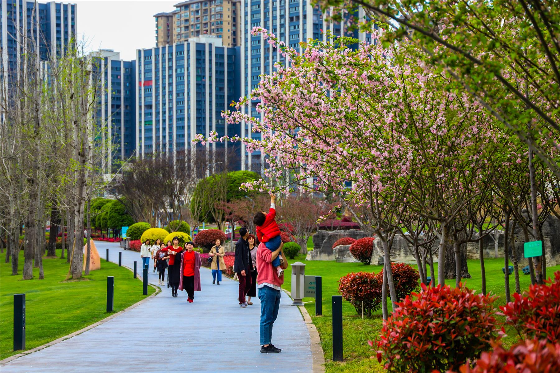 茵茵芳草间、万千花丛中、亲水步道旁,有新人的幸福微笑,有骑行者的矫健身姿,还有一家老小的其乐融融。人与自然的和谐相融,在这座公园演绎得淋漓尽致。