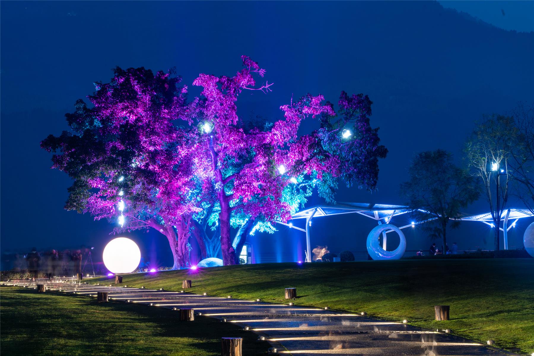 夜幕降临,月光草坪于光影描摹中完成华丽的变妆,霎时波光潋滟、繁星璀璨,行走其间犹如邂逅一幕幕梦幻的“星月童话”。在“花好月圆夜”主题灯饰的装扮下,公园尽显风情万种。11处智能化节点灯饰,塑造可行、可听、可观、可赏的自然休闲体验空间。
