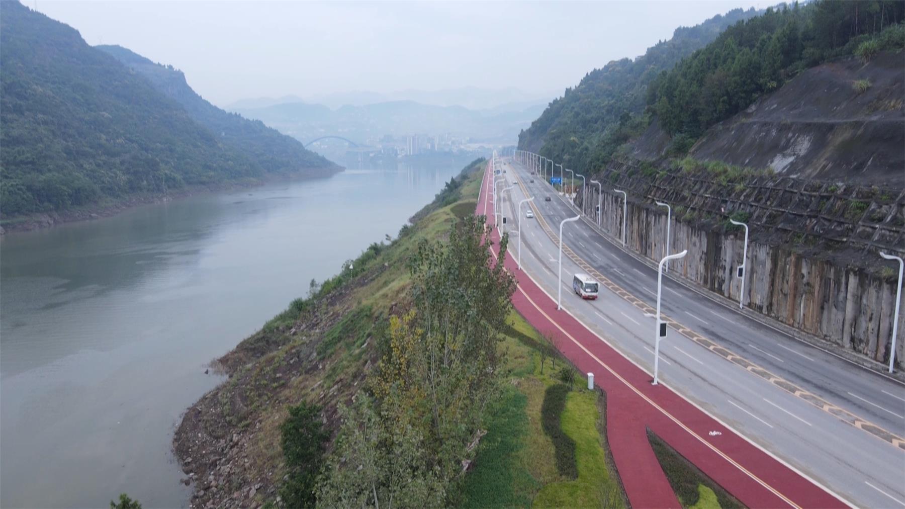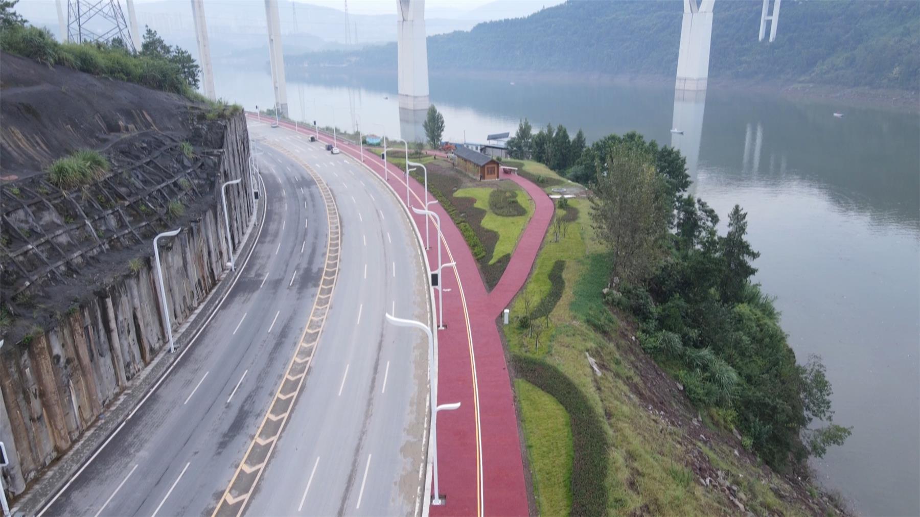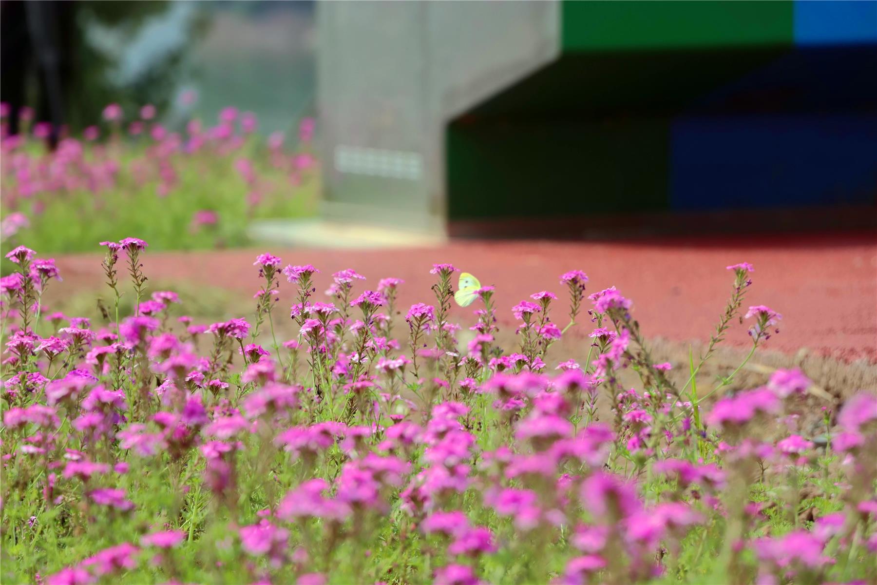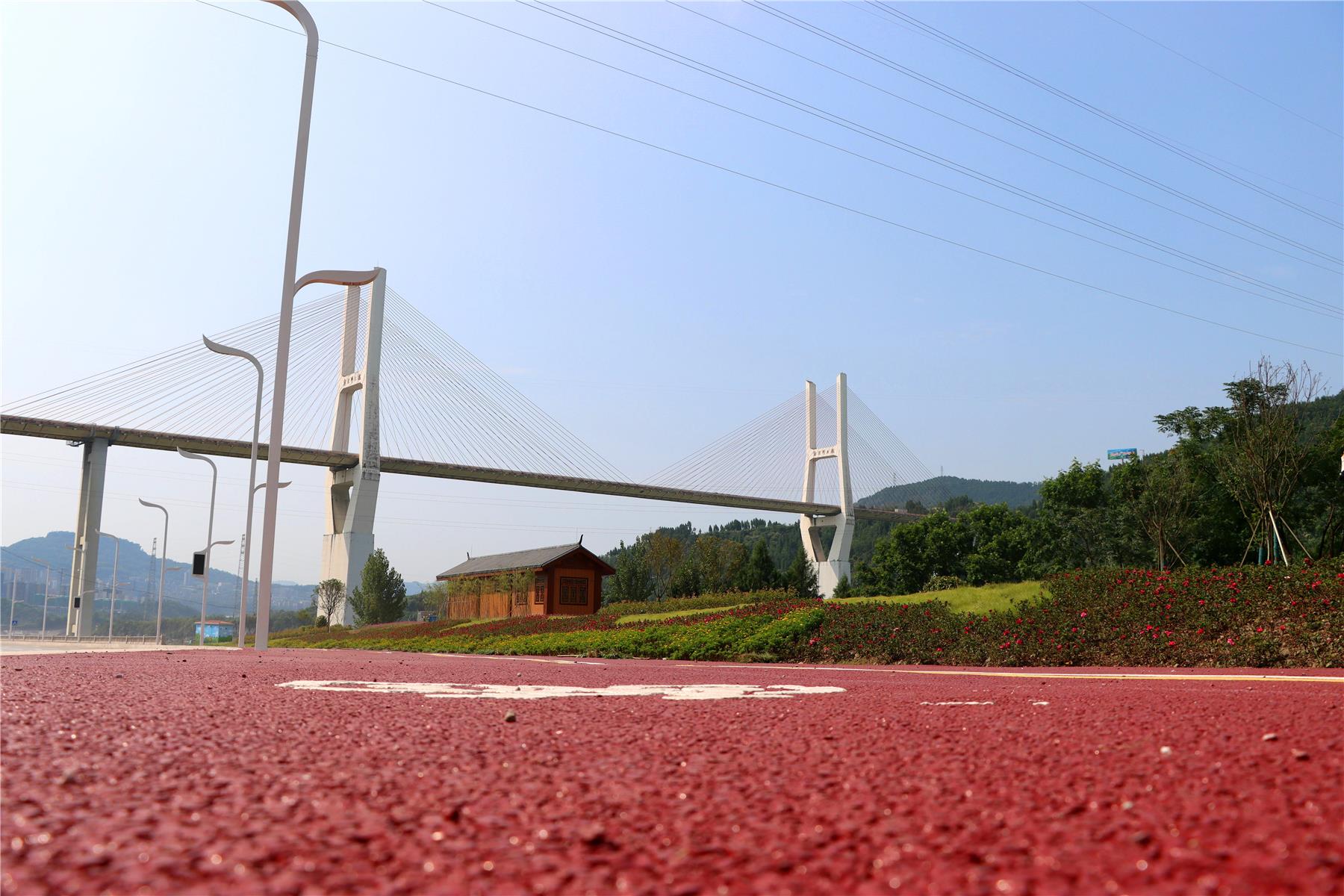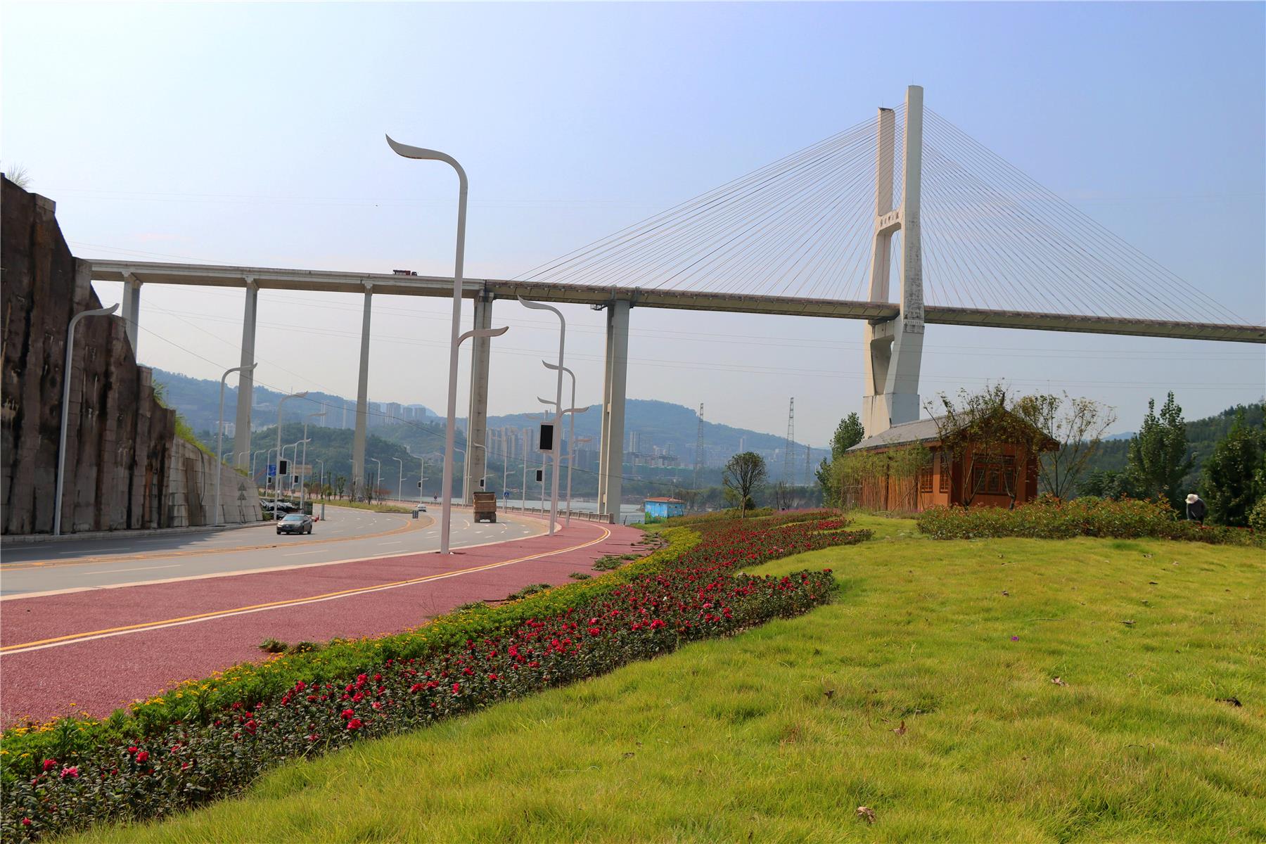 秋日清晨,澎溪河畔,绿草茵茵,树木葱茏。就在这一河碧水、两岸青山的美丽画卷中,一条“红龙”弯弯曲曲地延伸着,直至高铁新城。在澎溪河大桥下方,“红龙”一分为二,一条沿河弯曲,一条顺路延展,白兔井观景平台便藏于两者交叉间。放眼望去,整个观景平台,绿植环绕,鲜花满地,就算车辆轰隆而过,也惊不起正在花丛中翩跹的彩蝶。