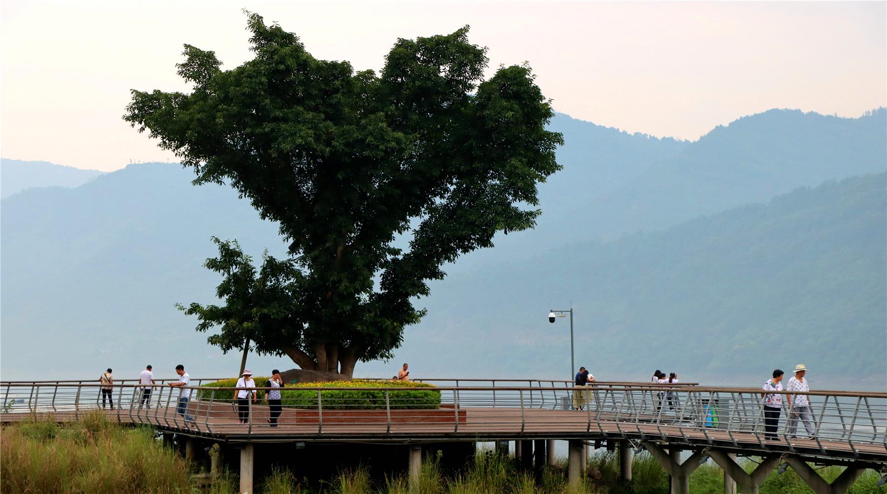 “滨江公园提档升级后,我们对园内活动场地重新规划,对路面进行改造,树木重新归置,现在整个观江视线都打开了。”云阳县环湖绿道指挥部办公室造价部副部长陈阵说。