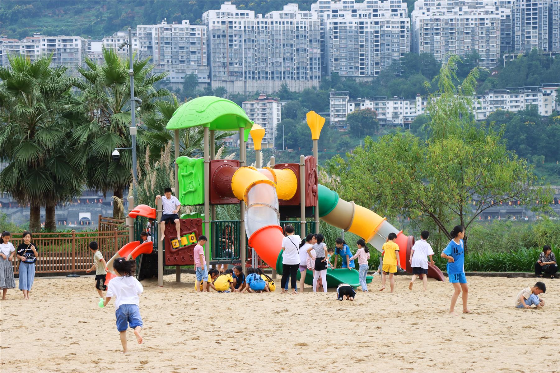 背靠三峡梯城,与张飞庙隔江相望,抬望眼便是云阳长江大桥。公园内的阳光沙滩,于2016年6月1日正式对外开放。自此以后,这里成了市民和游客的热门打卡地。吹着凉凉江风,踩着细腻海沙,踢足球、搭积木、放风筝……金色的沙滩上空时时回响起欢声笑语,昔日滩涂荒野,今朝俨然成了百姓乐园。