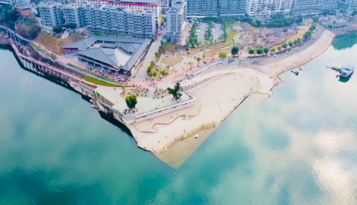 有西南片区最大的人工海沙沙滩、无动力设备儿童公园、人工草坪;有最具川东民居风格的天地人和建筑,最能还原云阳老码头场景的清风上江建筑,最与长江江岸融为一体的白虎台建筑;有最能突出传统民居四合院风格的四方井民俗文化中心,最能唤起老县城回忆的云江叙事等重要景观节点,成为市民、游客的心头好。