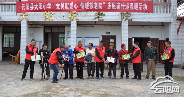 云阳网讯(通讯员 贺涛 黄舟)10月13日,大阳小学党支部书记余定平率领全体党员和少先队员志愿者走进敬老院,为10位老人送去温暖,并开展了慰问演出。