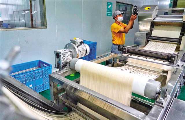 云阳陈大毛面业生产车间工人正在巡查 摄/崔力