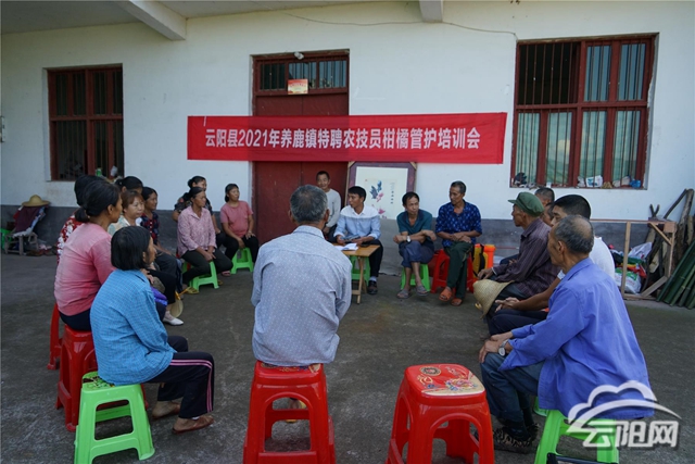 “除虫要彻底,打药要深入,晚熟柑橘要进行排水沟整……”在新禾村一农家院坝里,“柑橘保姆”向世祥正耐心地给村民讲解秋季柑橘管护知识。