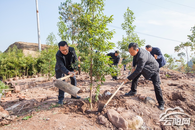 当天下午,渝北区林业局和云阳县林业局相关负责人带领干部职工,在水口数智森林小镇开展“我为祖国植10棵树”全民义务植树活动,共同植下“友谊树”。