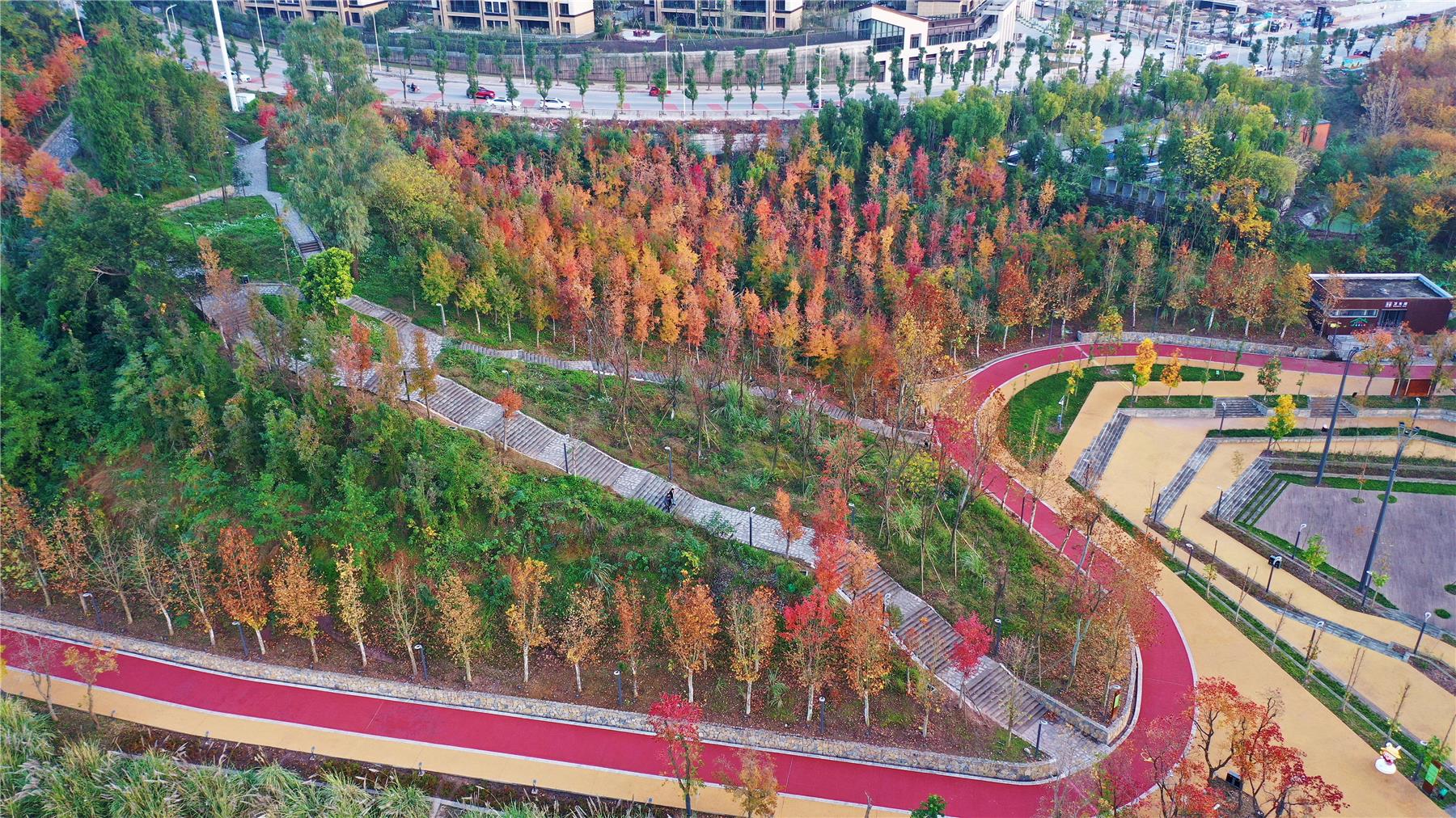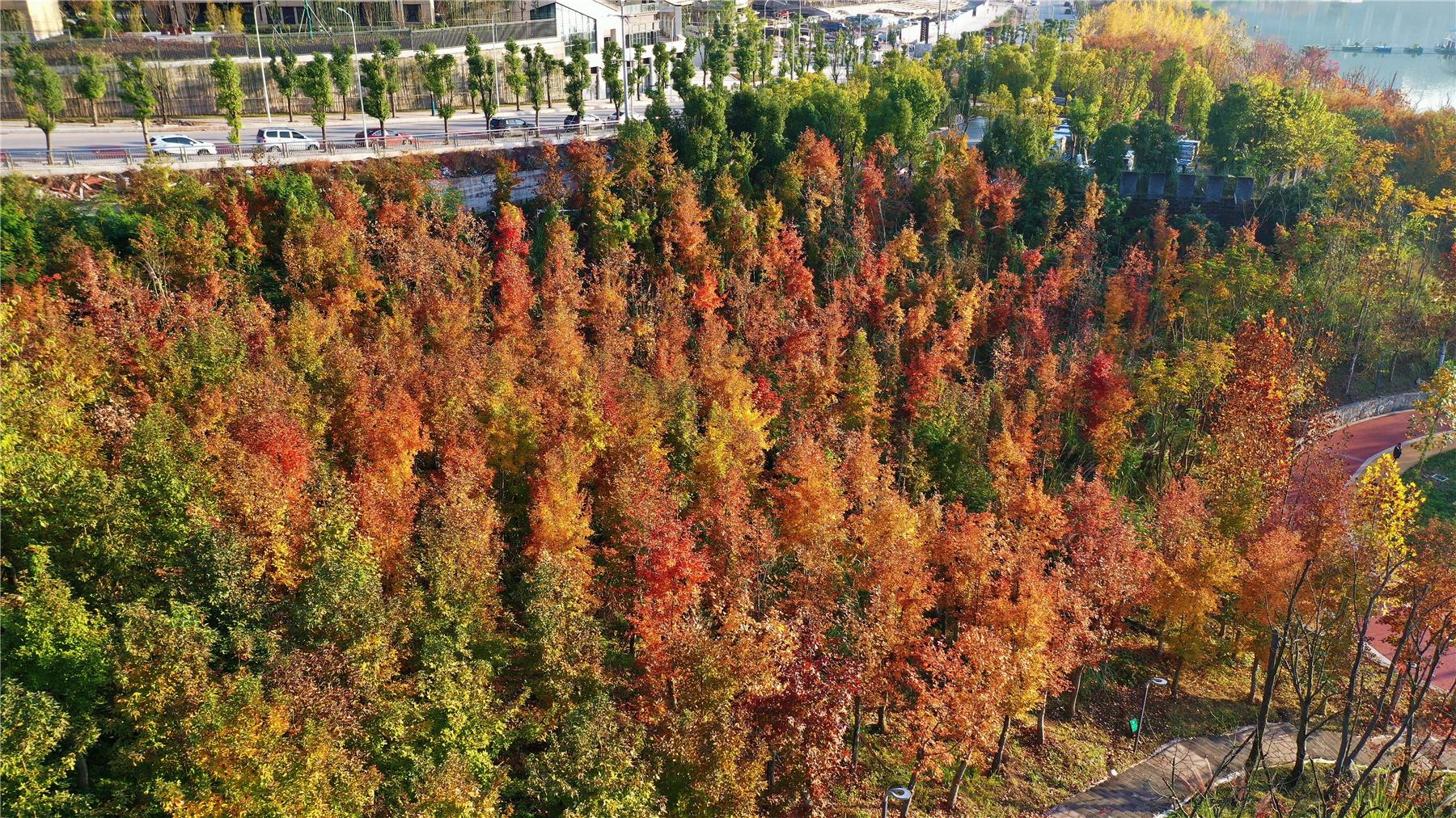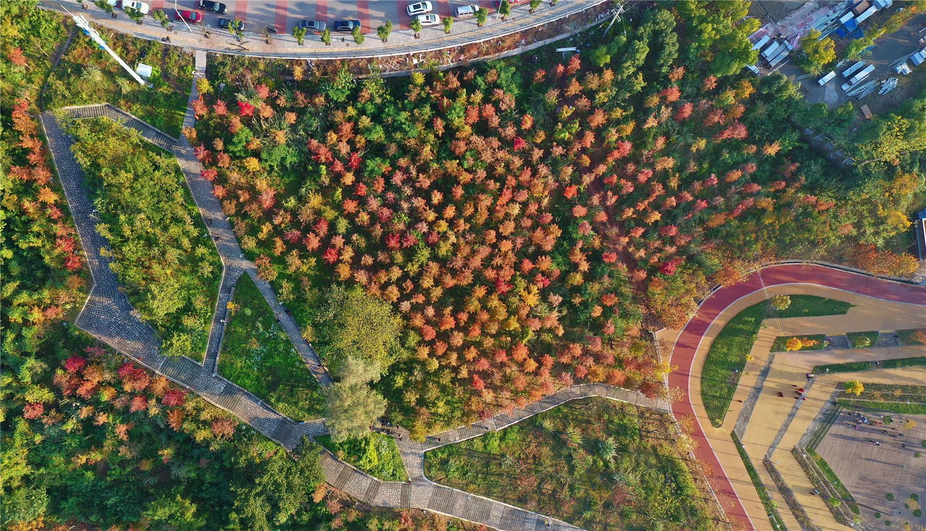 这段时间,随着天气放晴,白鹭公园的红枫树也迎来了最佳观赏期。成片的红枫、水杉等变黄或变红,色彩斑斓,仿佛调色板被打翻。火红的枫叶随着步道、河岸绵延开来,在阳光的映照下,整个公园呈现出一片“红叶烂漫 层林尽染”的迷人景象。(吴大维 摄)
