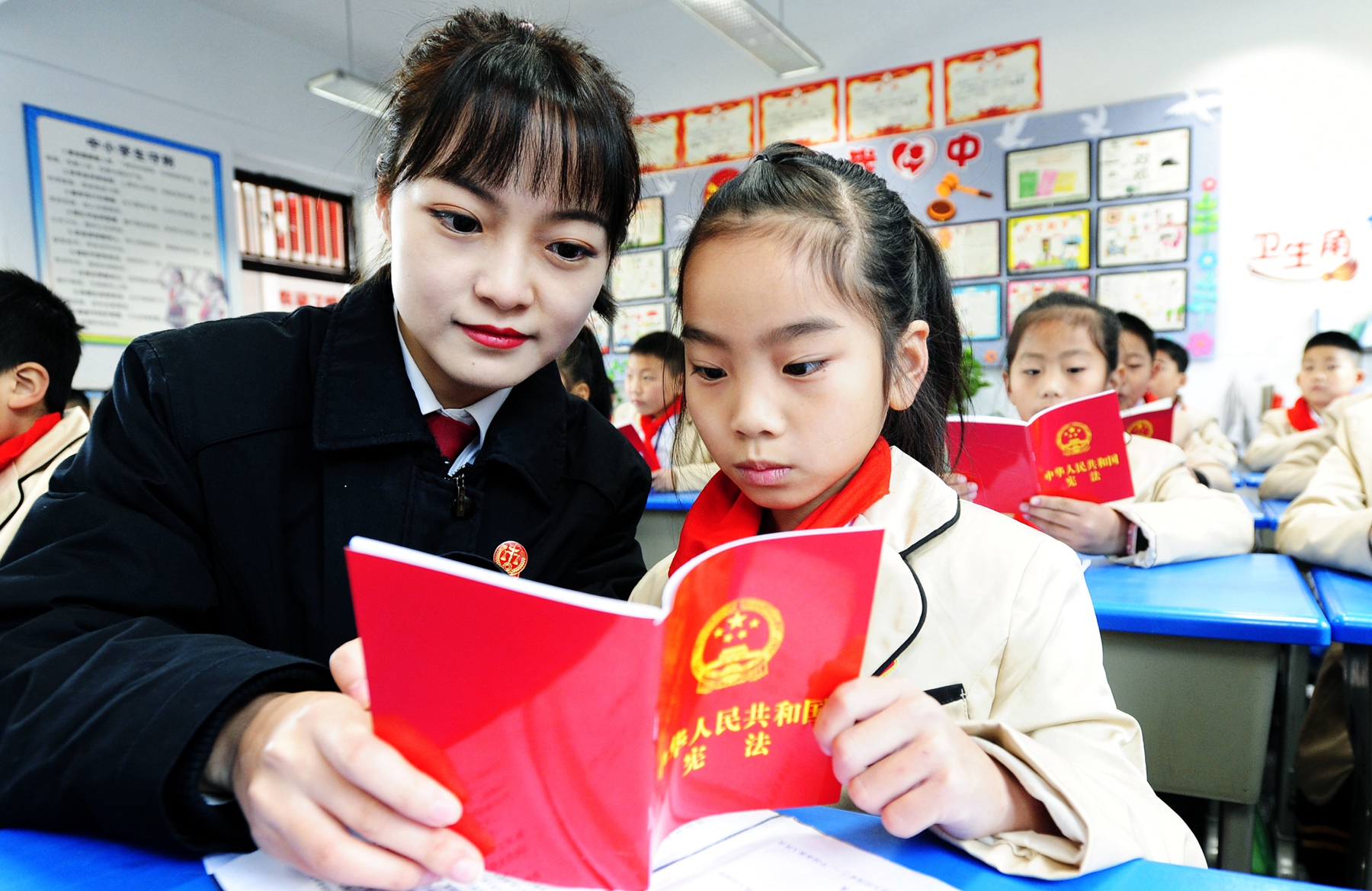 11月30日,云阳县人民法院团支部联合海峡小学少先队开展了“《宪法》在我心中,法治在你身边”送法进校园活动,面向青少年讲解《宪法》、普及法律。今年是第八个“国家宪法日”、第四个“宪法宣传周”,全国普法办明确11月29日至12月5日为本次《宪法》宣传周。