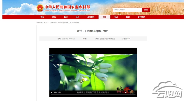 云阳网讯(记者 刘冲 刘太兴)12月1日,记者从县农业农村委获悉,《云阳红橙 心想是“橙”》宣传片已于日前正式登录农业农村部官网。作为“互联网+”农产品出村进城工程试点县之一,这无疑将进一步扩大云阳红橙知名度、美誉度,助推全县柑橘产业持续高质量发展。
