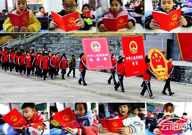 云阳网讯(通讯员 黄燕 蒲沙沙)12月3日,云阳县彭咏梧小学开展“学法‘红宝书’,成长‘护身符’”少先队主题活动,根据儿童年龄特征和心理特点购买小型张《宪法》单行本组织小学生晨读,以此迎接第8个国家宪法日,丰富第4个“宪法宣传周”。