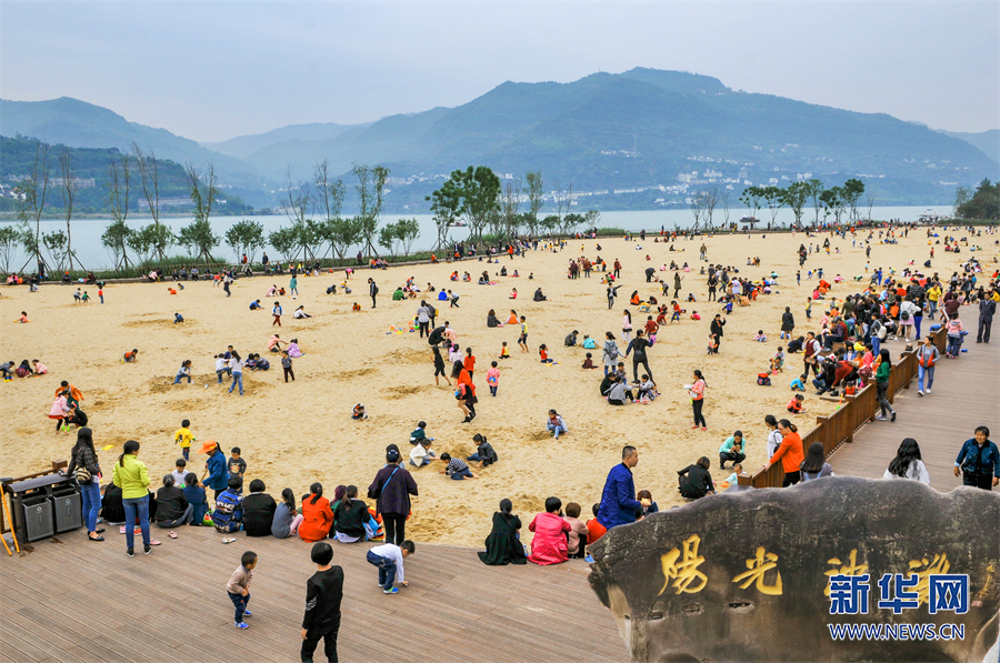 云阳环湖绿道之上,“阳光沙滩”是一个热门打卡地。这里的沙子带着咸咸的海风气味,是从福建漳州穿越千山万水,来到位于长江之畔的内陆城市云阳。建设“阳光沙滩”,原本云阳只是为找回因三峡工程而淹没的逝去老城区江岸沙滩记忆,没承想却插柳成荫,凭借“相比滨海场地少了大风和暴晒”的优势,将“阳光沙滩”建设成了国内沙滩排球赛事的重要举办场地之一。资料图 新华网发 刘磊 文