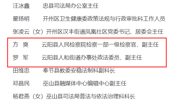 方爽云阳县人民检察院检察一部一级检察官、副主任