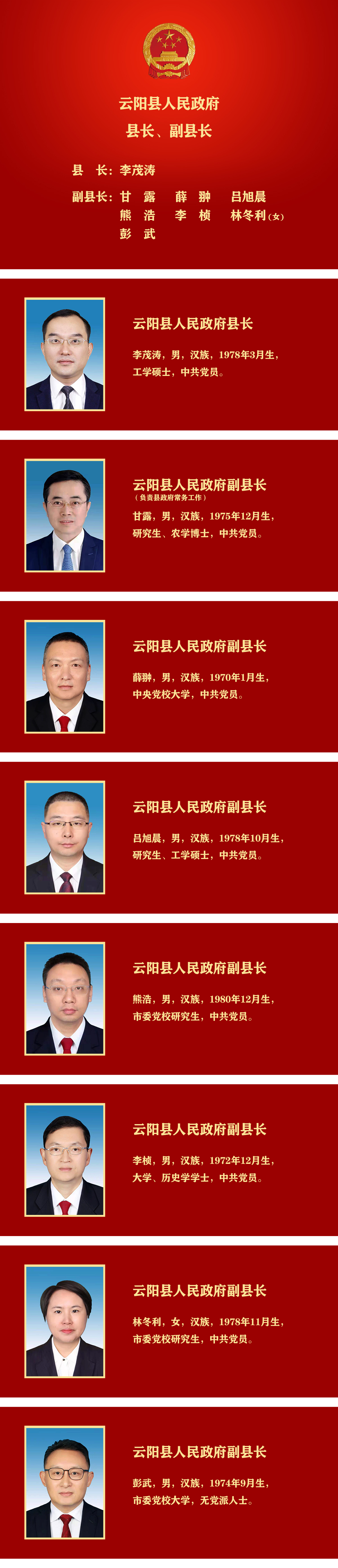 云阳县人民政府县长、副县长简介