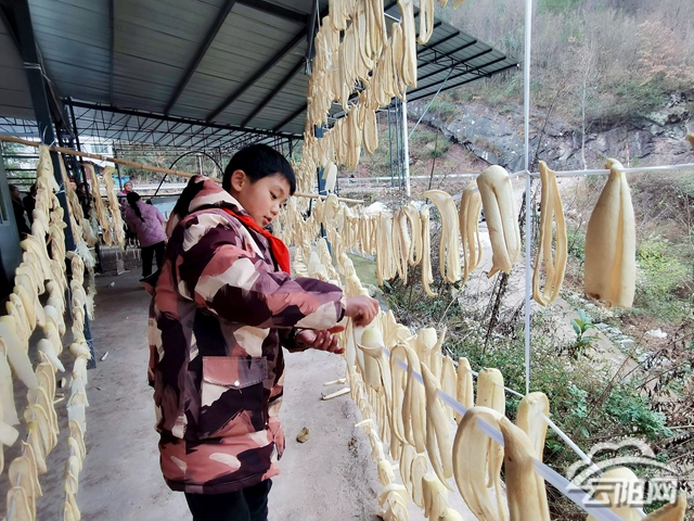 “洗净、切条、晾晒、风干、加工……”在车间里,工人吴久珍将精选的长白萝卜,用专用刀具切成细条,对站在旁边的孩子们讲解制作工序,“冬腊月间里自然风干,整个过程不采用任何添加剂和防腐剂,真正的绿色环保食品。”