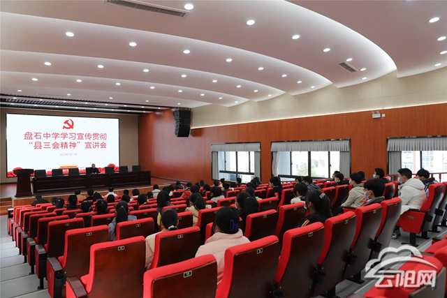 在盘龙街道盘石中学,校长周开国向师生们传达了县“三会”精神,领学了党代会报告和政府工作报告,重点解读了“五地一支撑”总体目标、“六个显著提升”具体目标、“十个提能升级”实施路径和“六个加快建成”,透彻分析了两个报告之间的内在联系。