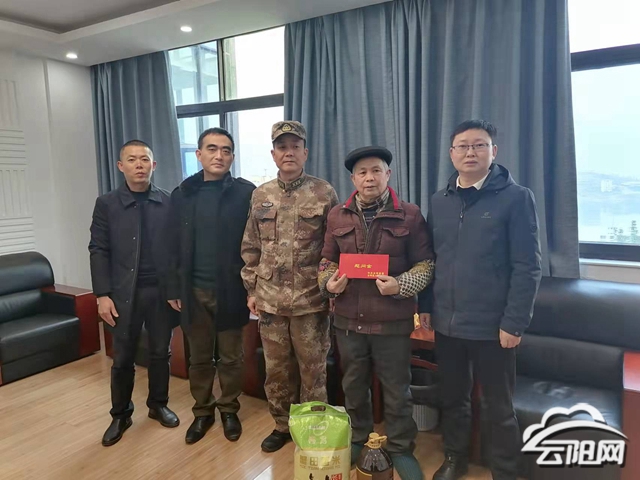 云阳网讯(通讯员 何竞嘉)春节来临之际,为彰显社会各界对军人职业的尊崇,让广大官兵扎根军营安心服役、保卫边疆,日前,县退役军人事务局联合县人武部开展春节前双拥慰问活动,深入辖区走访慰问立功受奖现役军人、边海防现役军人家属,向他们送去新春佳节的祝福。