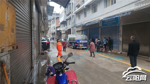 1月26日,耀灵镇组织4名环卫工人、3名镇村干部、高压水枪冲洗车1辆,针对兴耀路路面污泥和积尘,严重影响街道环境卫生和市民出行的路段,按照由高到低、由里至外的顺序对道路进行冲洗。在冲洗过程中,大家井然有序,不放过任何一个卫生死角。