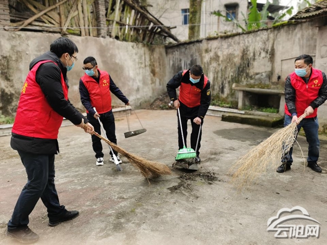 堰坪镇班子成员、机关职工、社区志愿者充分发挥先锋模范作用,身体力行,率先垂范,身穿红马甲,拿着抹布、扫把、铲子、垃圾袋等工具,以“不怕脏、不怕累,做牢做实,不摆花架子”的服务精神,分工协作,配合有序,对敬老院中的烟头、废物、树木枯枝等垃圾进行清理,经过辛勤的劳动,房内房外变得干干净净。