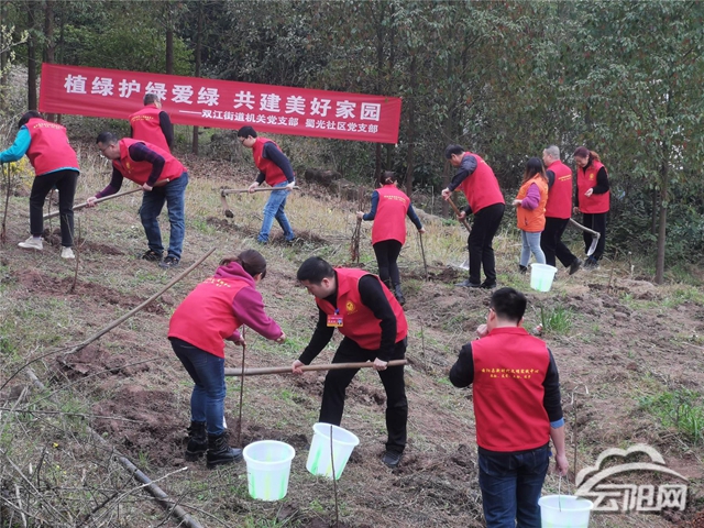云阳网讯(通讯员 吴世宝)3月10日,双江街道组织机关干部和群众志愿者23名在蜀光社区开展“我为祖国植10棵树”志愿服务活动。