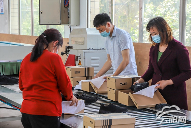 重庆辉跃鞋业有限公司总经理高云辉介绍,公司主要以两个板块为主,一是做冬天的棉鞋主要销往东北,二是做劳保用品以及边防民兵穿的运动鞋。每天产量达到1500双左右,产值一个月在200万左右。