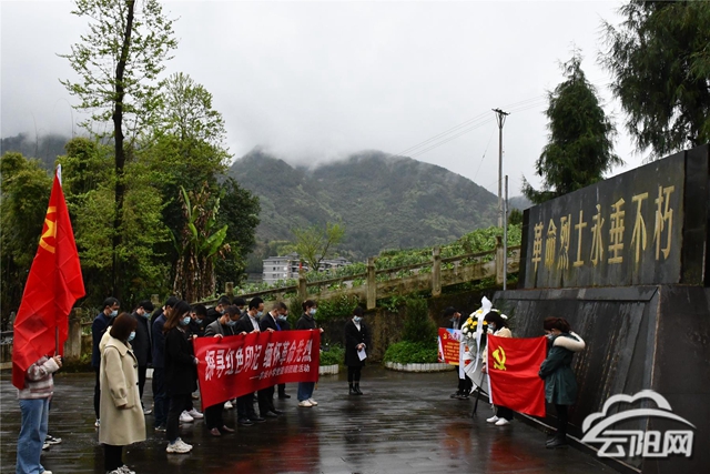 党员干部怀着景仰之心来到烈士碑前,向烈士敬献花篮,党员、团员庄严宣誓,全体默哀一分钟,向革命烈士表达崇高的敬意和沉痛的悼念之情。