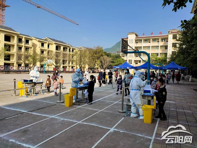 云阳网讯(记者 刘太兴)4月3日,人和街道中心卫生院核酸检测点排起了长队。