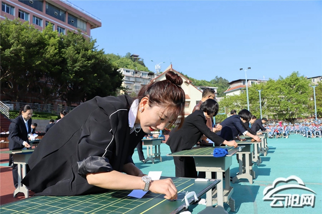 “海军旗语操”“巴乌演奏”,特色突出; “教师粉笔字现场比赛” “学生车模、航模、舰模竞赛”,竞争激烈;英语、音乐、美术、体育教师的英语歌、表演唱、书画秀、篮球秀,幼儿教师的“灯火里的中国”,精彩纷呈……