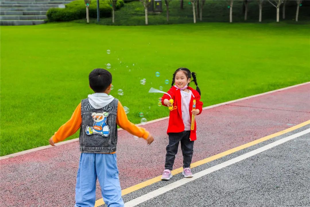 在环湖绿道月光草坪公园,来来往往的市民或漫步江边,或远眺平湖,人们嬉笑玩耍、赏景拍照,畅快骑行,好不惬意。