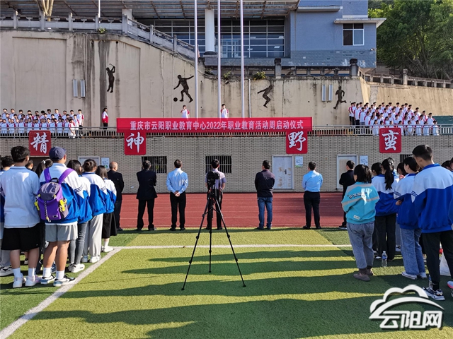 云阳网讯(通讯员 张小林)“‘劳动光荣、技能宝贵、创造伟大’……”整齐响亮的呼号声响彻校园……5月5日,云阳职教中心举行2022年职业教育活动周启动仪式。仪式上,学校负责人作题为《技能,让生活更美好》的动员讲话并宣布活动周正式启动,相关处室负责人解说职教活动周标识含义,学生会干部带领全体学生呼号。