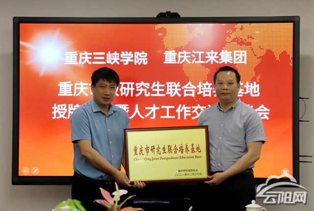 授牌仪式上,江来实业集团负责人介绍了云阳经济社会发展和集团有关情况;双方共同为研究生联合培养基地授牌,现场颁发研究生校外合作导师聘书。