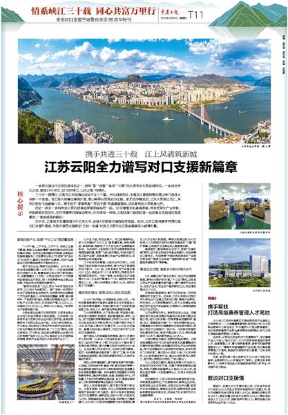2021年,云阳经济总量突破500亿元大关,连续4年跻身中国西部百强县。如今,江苏云阳将携手共同打造对口支援升级版,为奋力谱写全面建设“五地一支撑”社会主义现代化云阳新篇章注入磅礴力量。