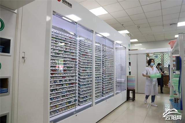 在县人民医院门诊大厅取药处,还安装着一台大型全自动发药机。有了这台设备,患者从缴完款到取药最快只需8秒钟,人还未走到取药窗口,药品就已配好,真正由“人等药”变为“药等人”。