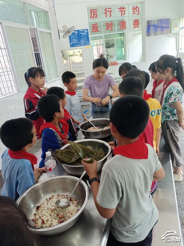 为了更好地体验实践活动,在劳技课上,老师向学生讲解如何包粽子并做示范,同学们在老师的指导下学习了包粽子,同学们都积极参加到此项活动中,还表示要把包好的粽子带回家跟家人⼀起分享劳动的成果,感受节日气氛。