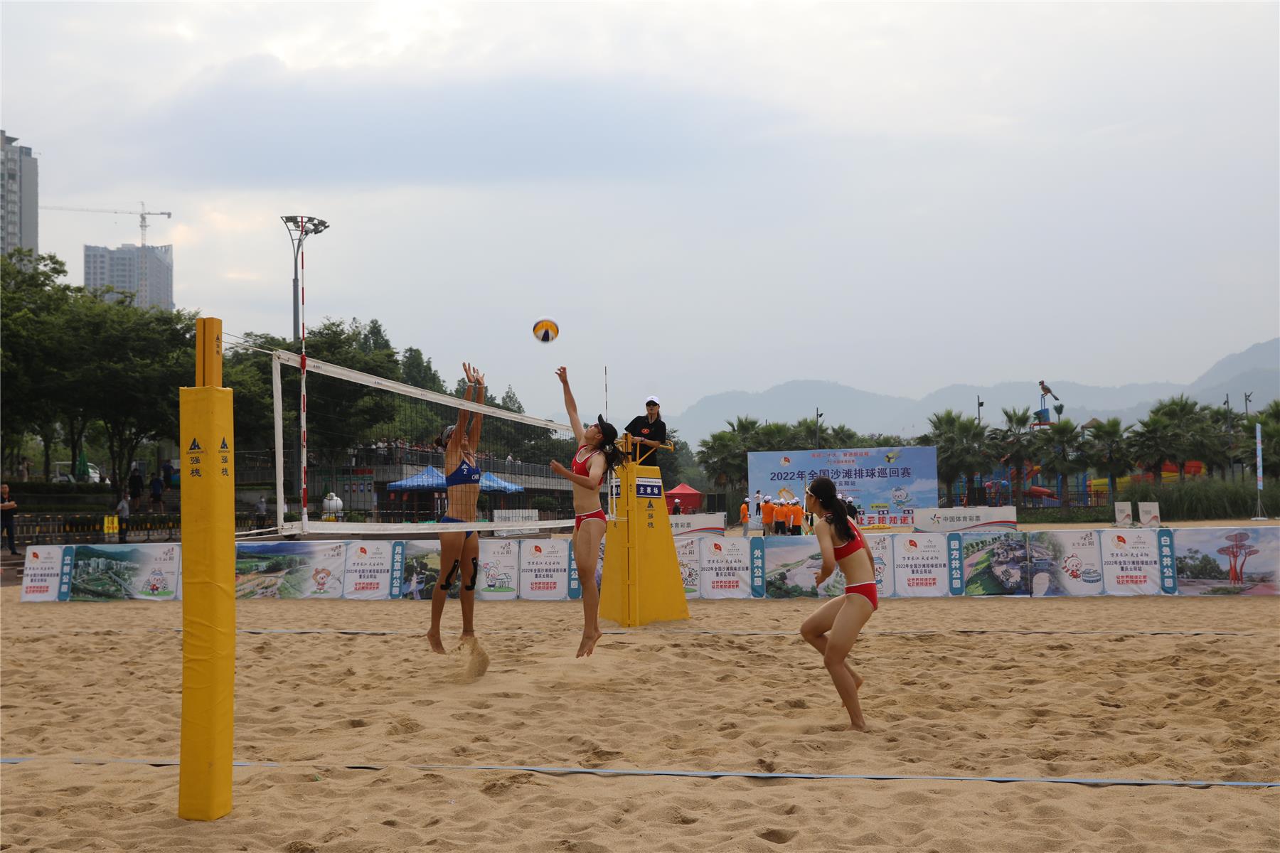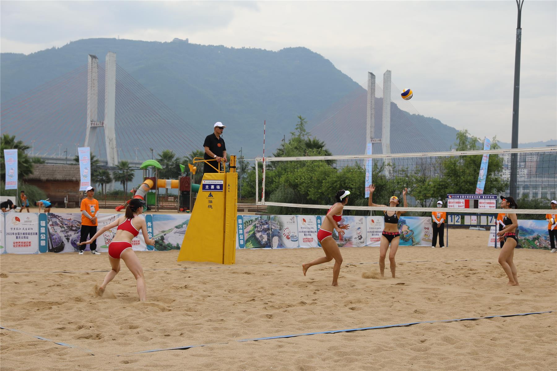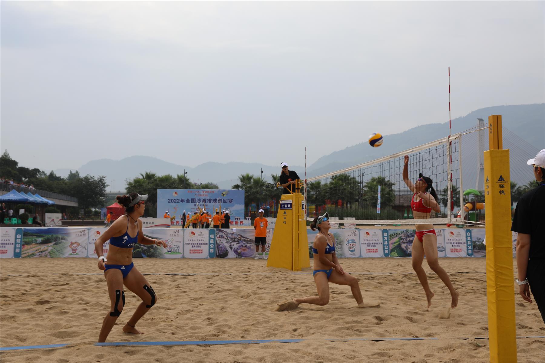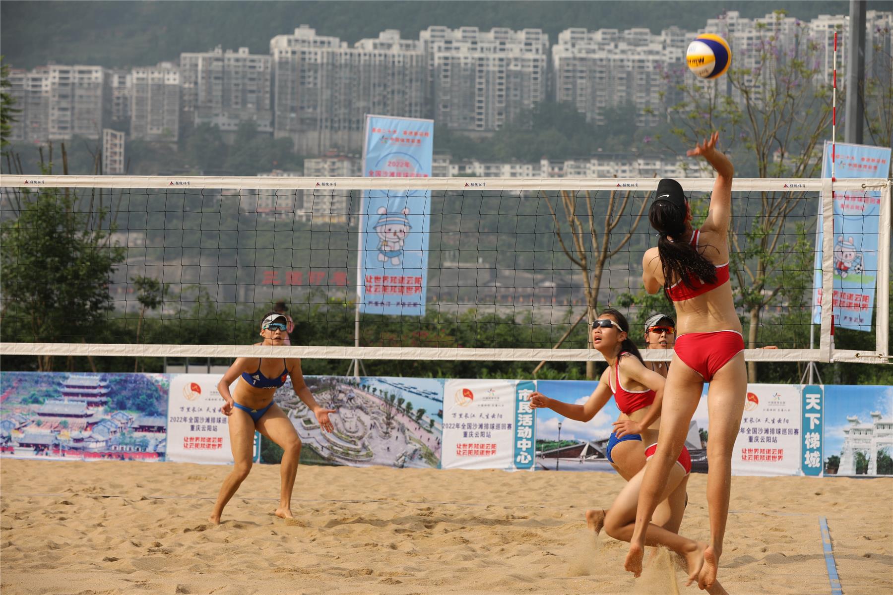 云阳网讯(记者 刘太兴 陈小娅 杨力)头顶蓝天,沐浴阳光,光着脚丫,在金色柔软的沙滩上,尽情地跳跃、滚翻、流汗、欢笑,享受沙滩气排球运动的美好时光。2022年“万里长江·天生云阳”全国沙滩排球巡回赛揭幕战的比赛由国家队备战杭州亚运会沙排赛一队的王婧哲、阿黑旦·木沙江对阵湖北代表队的王梓彤和詹思桐,这也是国家队备战亚运会两名沙排运动员首次配合参家比赛。