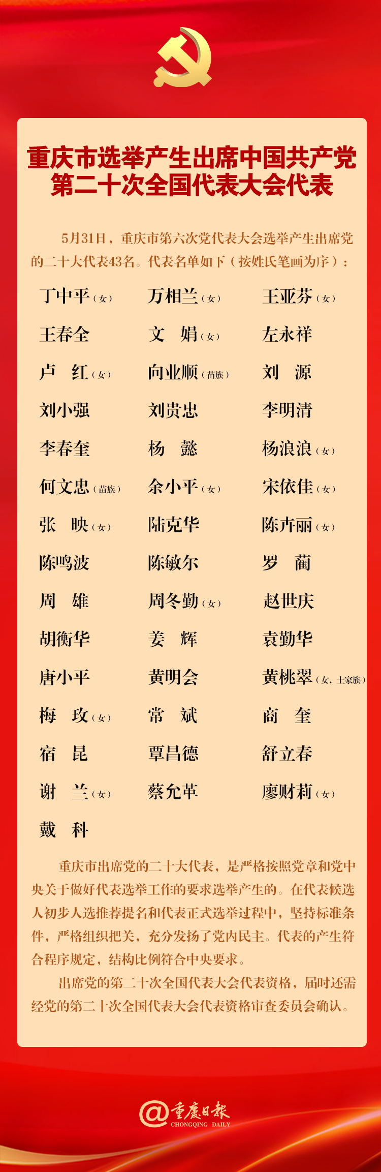 重庆市选举产生出席中国共产党第二十次全国代表大会代表