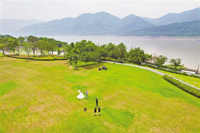 云阳县月光草坪,市民正在拍摄婚纱。(摄于6月14日)