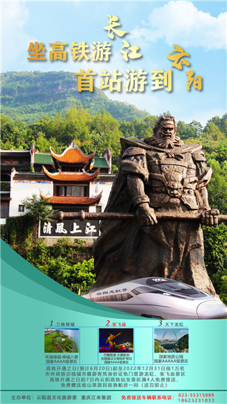 2.高铁开通之日起7日内,免费对象凭身份证可免费乘坐云阳高铁站-张飞庙景区-龙缸景区直通车;