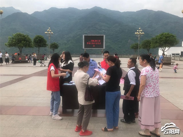 云阳网讯(通讯员 董辉)近日,龙洞镇平安建设办联合辖区派出所、司法所、应急办、综合行政执法大队在大麦沱社区望江广场开展“6·26”国际禁毒日集中宣传活动。