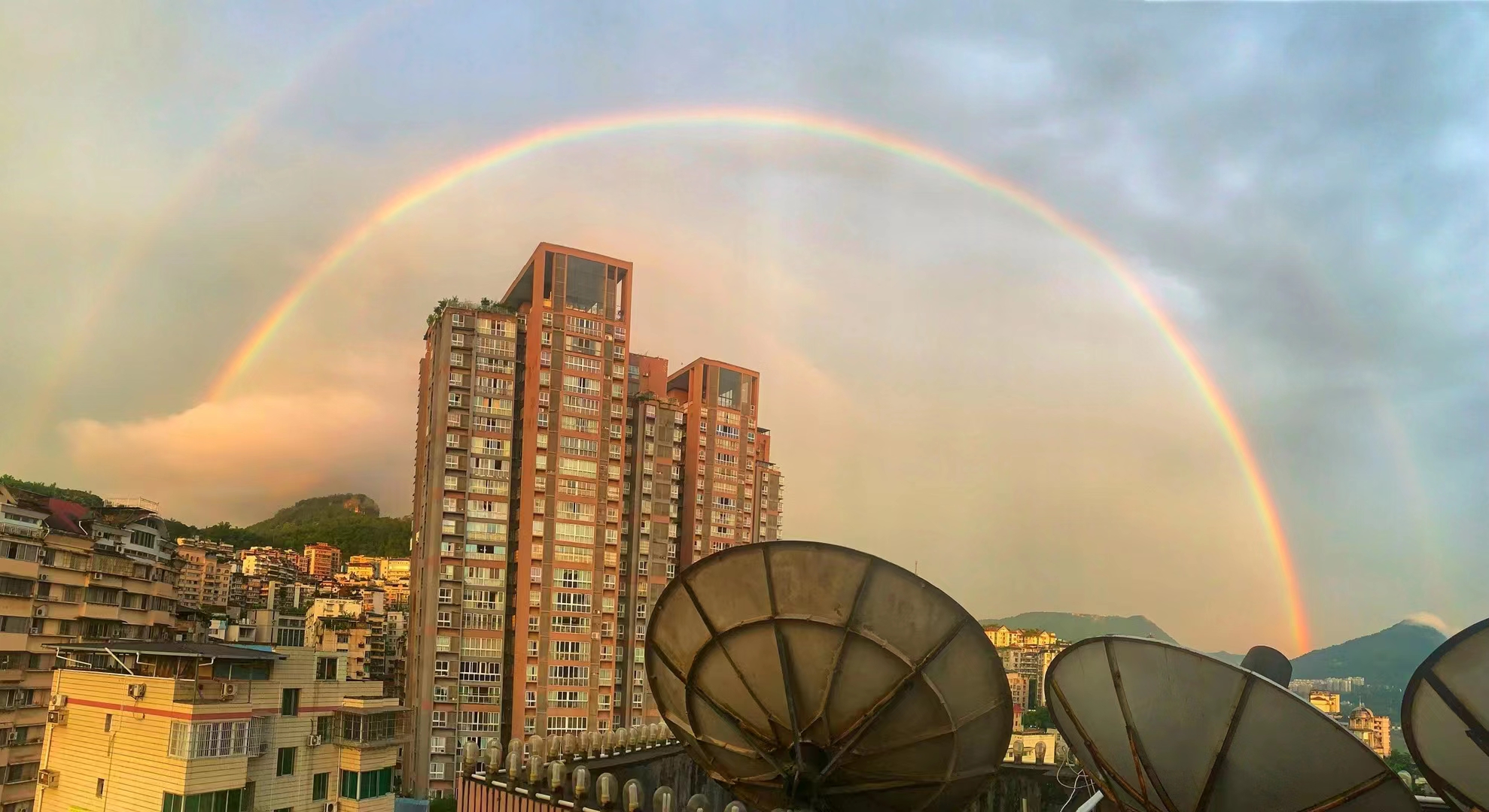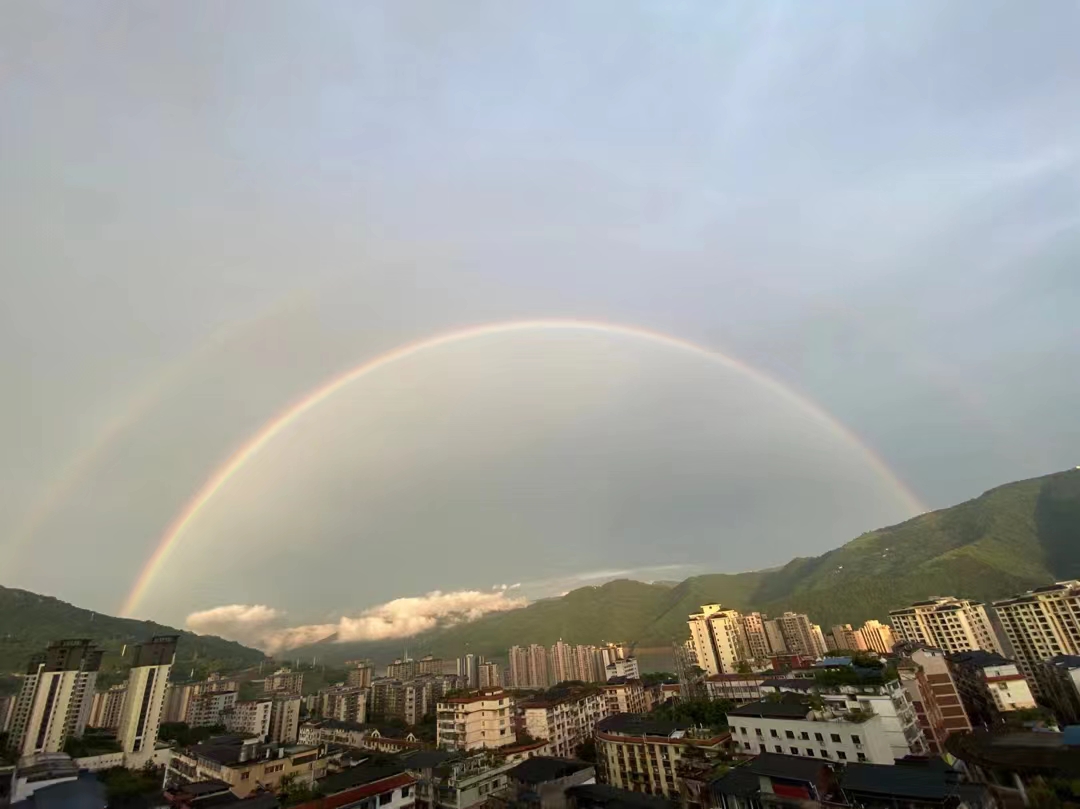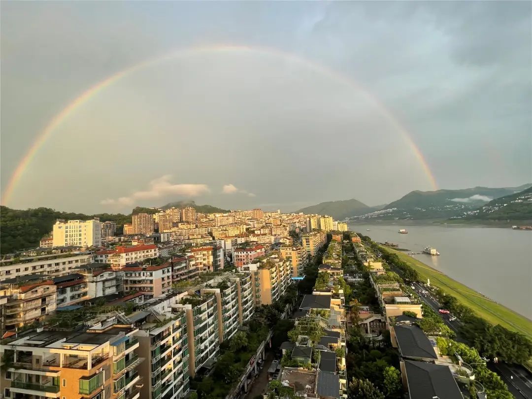 晚上7点20分左右,一道跨越天际的双彩虹现身云阳上空。在环湖绿道,在居民楼院,在城区街头,在乡镇..... 人们纷纷驻足,举头观赏,尽情品味这份夏日的温柔与美好。近30分钟过后,彩虹才渐渐隐去。