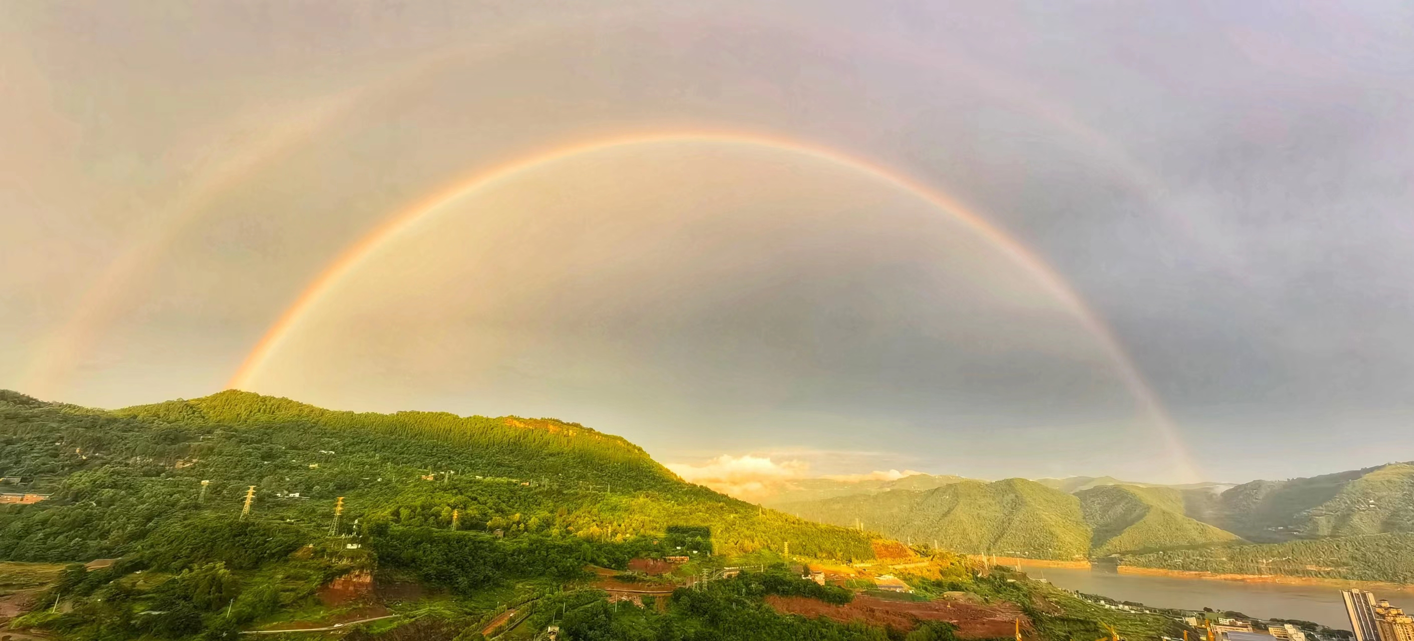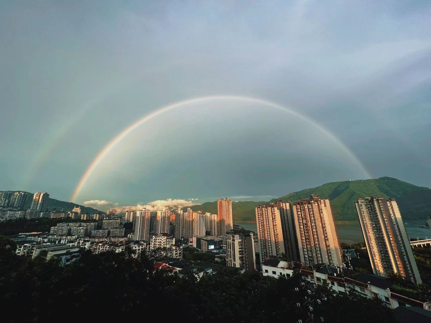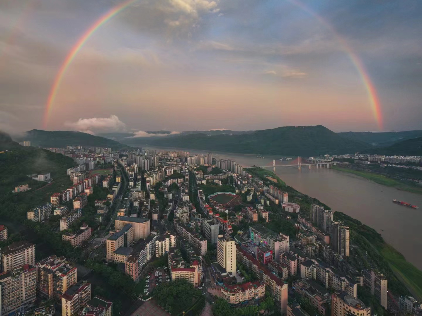 晚上7点20分左右,一道跨越天际的双彩虹现身云阳上空。在环湖绿道,在居民楼院,在城区街头,在乡镇..... 人们纷纷驻足,举头观赏,尽情品味这份夏日的温柔与美好。近30分钟过后,彩虹才渐渐隐去。
