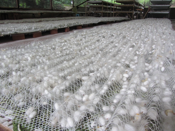 据了解,截至2021年底,园区内桑园种植面积达1万亩,粮油种植面积达到1.2万亩,实现主导产业全产业链总产值达2亿元,其中粮油及蚕桑产业产值达7000万元。作为现代农业产业园的另一主导产业,蚕桑产业同样有着可喜收获。在四周树龄都在35年以上的古桑大道上,可以看见漫山遍野的桑树,而在这之间,坐落着蚕桑养殖基地。3500平方米的基地集蚕桑生产、加工、蚕桑文化展示展销于一体,目前已实现桑蚕饲养从小蚕到大蚕及上架全程智能化,通过智能化养殖方式,实现蚕桑产业的“四化”(养殖智能化、产能最大化、质量最优化、成本最低化),最终将建成集智能养蚕、蚕茧烘炕加工、蚕桑历史文化展览等于一体的蚕桑科普基地。