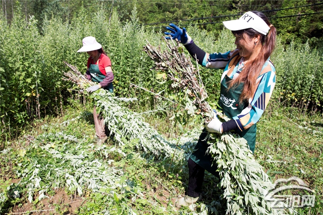 云阳网讯(记者 刘兴敏)7月24日,清水乡歧山村2组的王勇带领10多名工人在艾草基地割下第一茬艾,开启了今年高山艾第一镰。