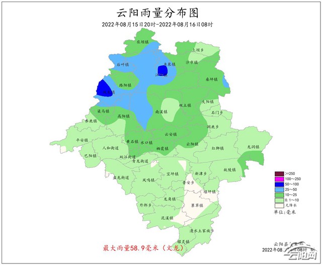 截至8月16日8时,长江以北乡镇降雨明显,双龙、鱼泉共3个雨量站达暴雨,江口、南溪等9个雨量站达大雨,21个站点中雨,其余站点小雨,最大雨量58.8毫米(双龙镇文龙社区),最大小时雨量31.9毫米(江口镇马乐村,27日06时),县城10.2毫米。人影作业区内增雨效果明显,干渴的稻田喝上了救命水,萎蔫的庄稼又满血复活,长江以北乡镇旱情和森林火险气象条件等级有一定程度缓解,人影抗旱帮了大忙。