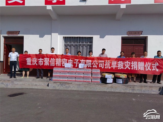 云阳网讯 (通讯员 易守菊 ) 8月23日下午,重庆市聚信精密电子有限公司组织相关人员,冒着酷暑,前往水口镇枣子村开展抗旱救灾关爱慰问活动,并为枣子村送上软水管400米,矿泉水20件。