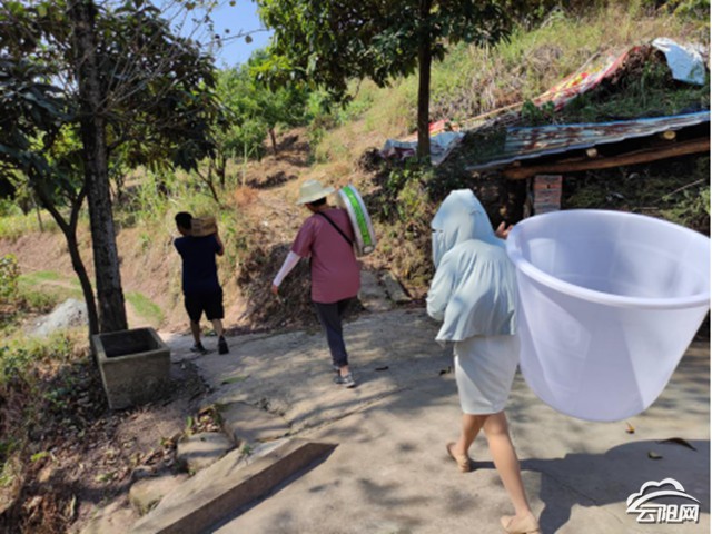 白龙社区驻村工作队就近挑选并购买水泵2台、蓄水桶4个、管道240米,共计花费2000余元,都由镇驻村工作队成员余建明捐赠。